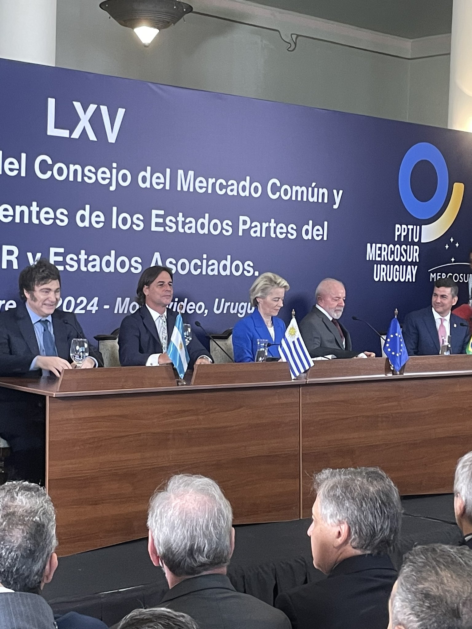 El anuncio se dio en el marco de la cumbre del bloque latinoamericano, con la presencia de los presidentes de Argentina, Javier Milei; de Brasil, Lula Da Silva; de Uruguay, Luis Lacalle Pou; de Paraguay, Santiago Peña, más la titular de la Unión Europea, Ursula Von der Leyen.