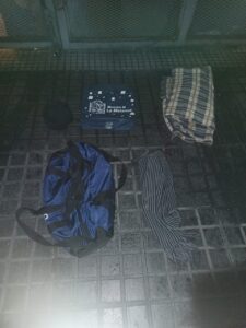 Los oficiales los interceptaron cuando salían del edificio, llevando en su poder dos destornilladores, dos pares de guantes, un bolso, una bolsa, dos linternas y un celular con auriculares.