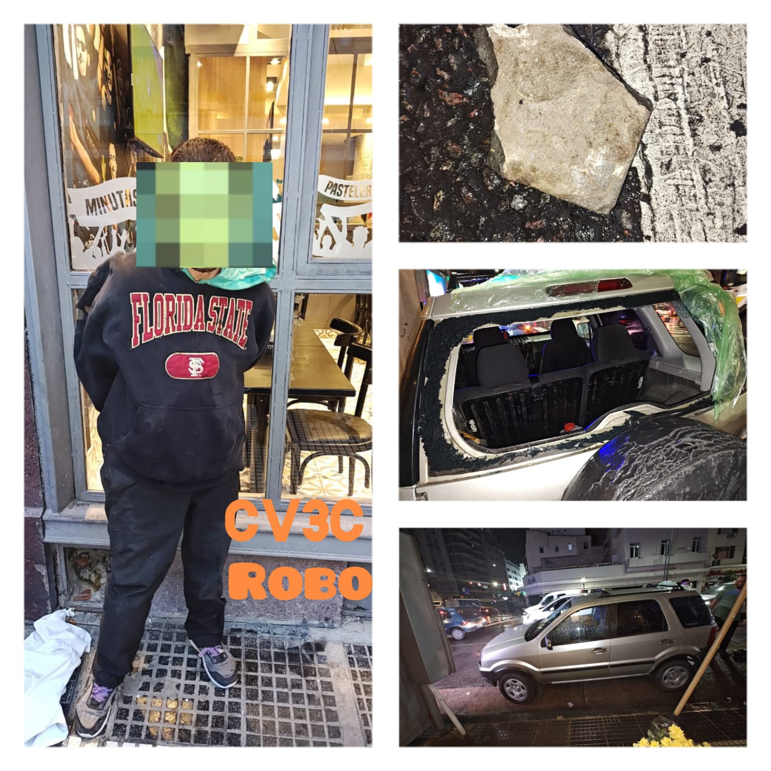 Fue alcanzado por el personal policial y detenido. Recuperaron los efectivos la totalidad de los elementos sustraídos, y secuestraron la piedra utilizada por el delincuente.