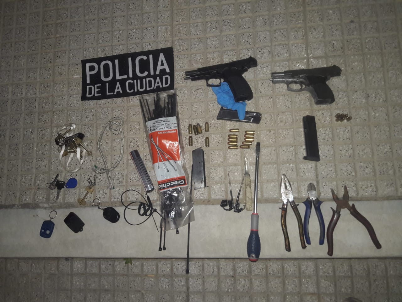 Una vez detenido el automóvil, se hizo descender a los ocupantes y se verificó que en sus cinturas poseían dos pistolas calibres 40 y 9 milímetros, ambas con numeraciones limadas y cargadores completos de municiones.