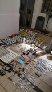 Durante el procedimiento se secuestraron varios bultos de agujas e inyecciones, gran cantidad de frascos con medicamentos que contaban con las inscripciones en idioma oriental, cremas, ampollas inyectables con distintas sustancias, lidocaína, tensiómetros, estetoscopios, cajas con blísters de pastillas, tarjetas a nombre del implicado que hacían alusión a su especialidad en diversas especialidades clínicas, delantales, 3 licencias de la Asociación Civil de Acupuntura a nombre del falso médico y documentación de interés para la causa.