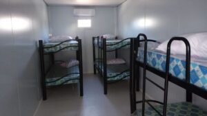 En la parte central se encuentran dispuestas mesas y bancos de metal donde los detenidos comerán. En ambos lados están dispuestos los módulos-celdas, que cuenta cada uno con seis camas cucheta y baños. Tendrán luces antivandálicas, vidrios laminados, bulonería y tornillos ocultos; instalaciones embutidas; aire acondicionado y podrán adaptarse a sistemas complejos de circuito cerrado de televisión. Además, habrá rejas perimetrales de alta seguridad.