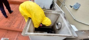 Allí, por intermedio de poleas que funcionaba desde un patio hacia una terraza para subir y bajar elementos. En la terraza los funcionarios descubrieron que había varios tanques que contenían un líquido verdoso, que, de acuerdo admitió el propietario, se llevaba a cabo un proceso de decapado de metales, utilizando ácido nítrico o ácido sulfúrico, dos sustancias altamente tóxicas, para disolver las impurezas sin dañar los metales preciosos.