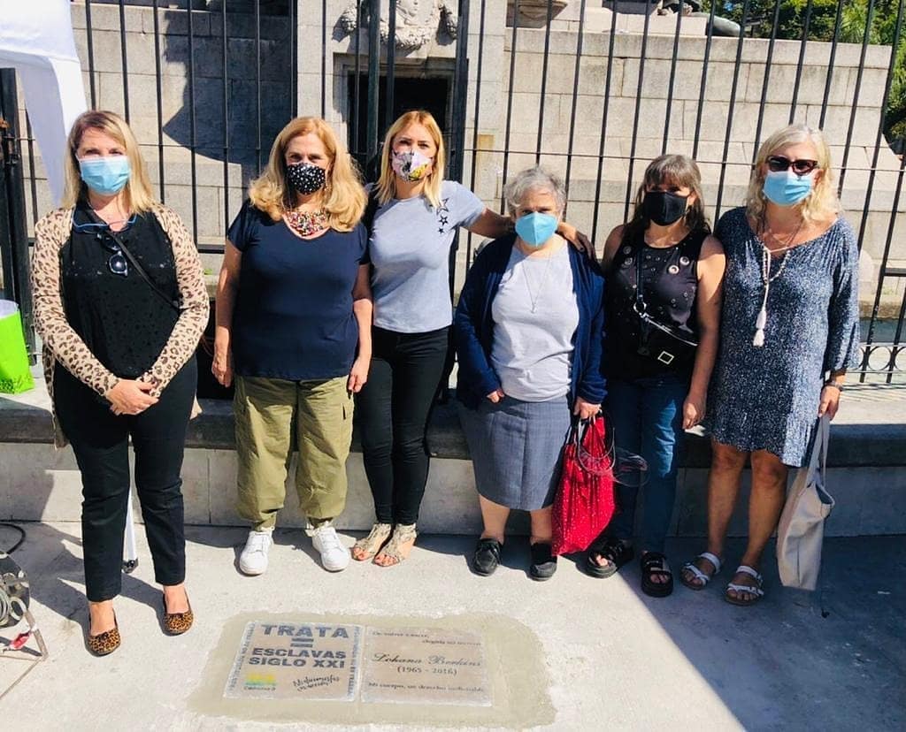 Junto a invitadas en invitados, un poco antes del mediodía, inauguraron las baldosas en las que se grabó una frase de la «comandanta mariposa»: