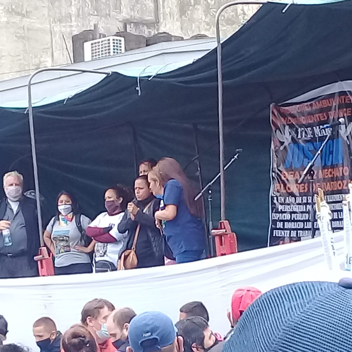 En la promoción del acto señalaban que se efectuaba por cumplirse un año de la muerte de una mujer, que vendiendo en la calle sufrió un accidente vial. Las organizaciones que auspician la venta ilegal en las calles, desde el primer momento culparon del deceso a inspectores del GCBA y policías. La justicia no lo confirmó.