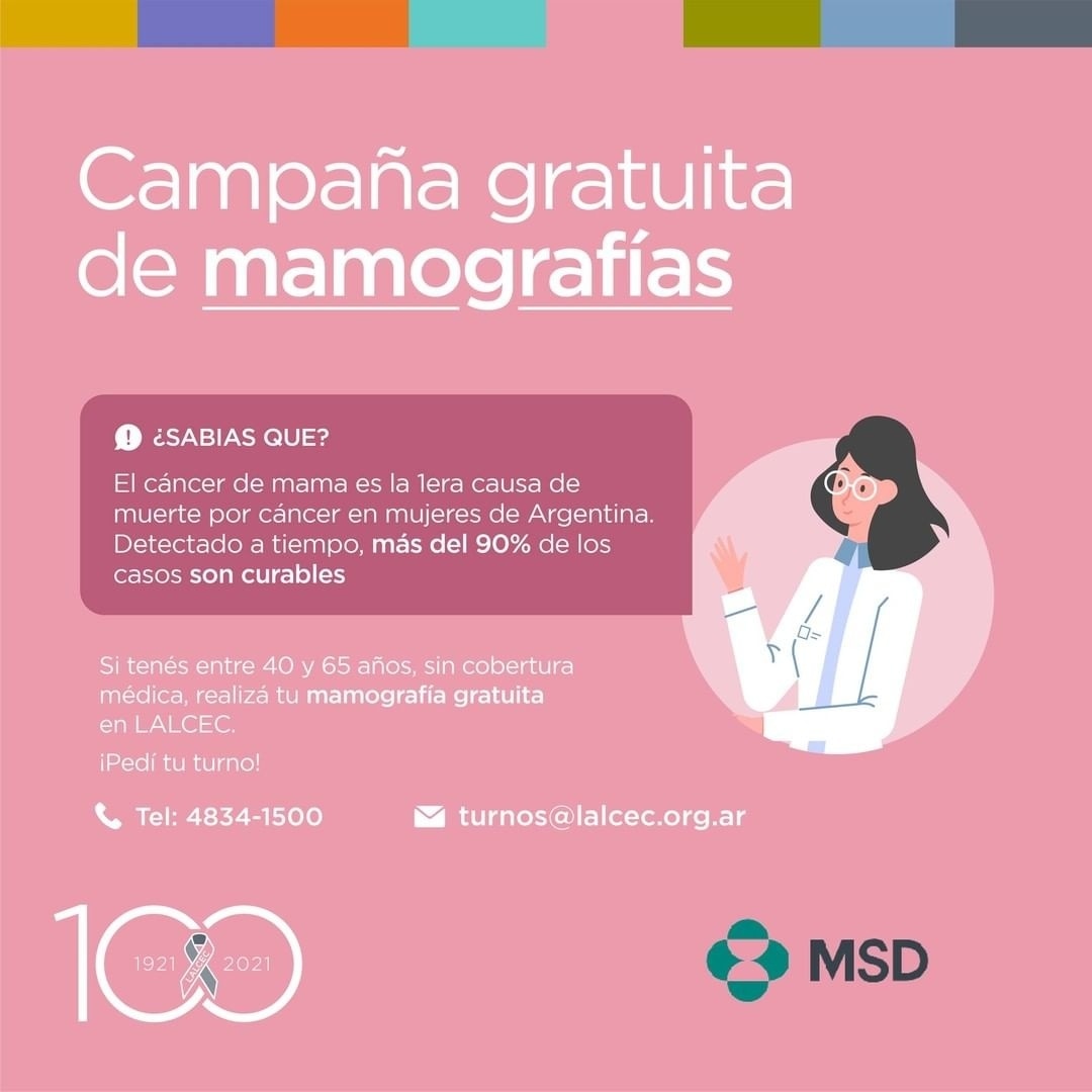 El cáncer de mama detectado a tiempo puede curarse en más del 90% de los casos y la mamografía es el mejor estudio para eso