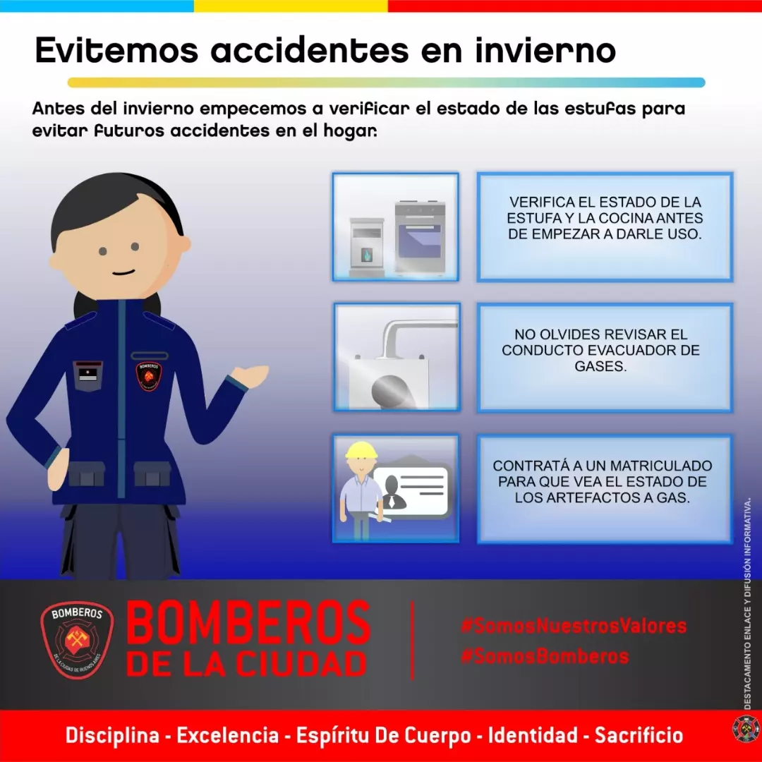 Ante las bajas temperaturas de esta época del año y la utilización de diferentes métodos de calefacción, Bomberos de la Ciudad detalla una serie de consejos de prevención para evitar sufrir una intoxicación por inhalación de monóxido de carbono.