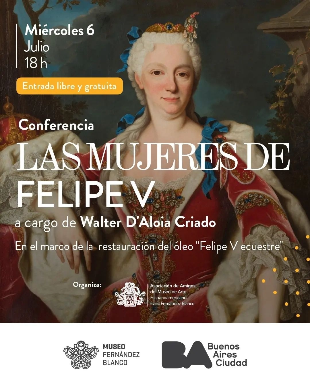 Te invitamos a la conferencia “Las mujeres de Felipe V” a cargo de Walter D’Aloia Criado, Vicecónsul Honorario de España y Presidente de los @amigosdelfernandezblanco