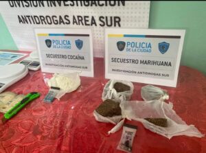 Los efectivos también incautaron otra balanza de precisión, un ladrillo más 20 envoltorios de marihuana por 778 gramos, 52 dosis de cocaína por un total de 43,5 gamos, tres celulares, 22.540 pesos, y un block con anotaciones.