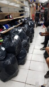 En el barrio de Flores, se llegó a locales ubicados en Yerbal 2700, Bogotá 2700, Bogotá 3500 y Venancio Flores al 3100, donde se logró el secuestro de 2.500 prendas de marcas falsificadas, más de cien rollos de telas para la confección de indumentaria, dos máquinas cortadoras de telas, una tabla de mesa para corte, 23 carros para el transporte de prendas y dos garrafas, ademas de la identificación de ocho imputados (cinco hombres y tres mujeres) por infracción a la Ley de Marcas.