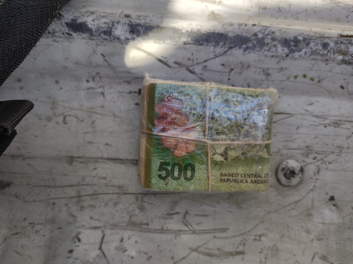 En la requisa, los efectivos encontraron en un bolso del sujeto más paquetes simulando ser envoltorios de dinero con papel en el interior.