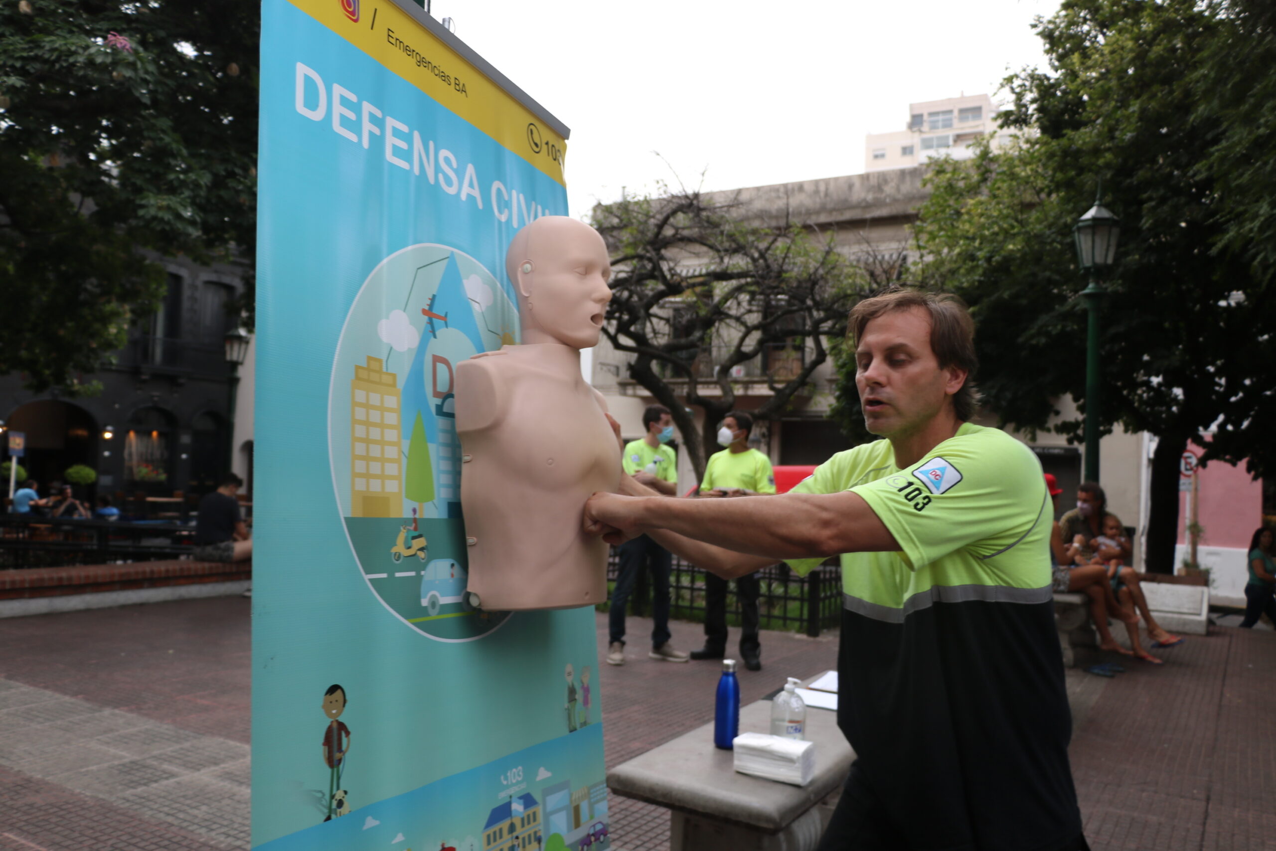 Las charlas y prácticas de RCP son brindadas por instructores de Defensa Civil, mientras que efectivos de Bomberos de la Ciudad están a cargo de actividades lúdicas e interactivas con los más chicos, dando consejos de prevención y actuación frente a situaciones de emergencia.