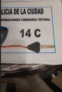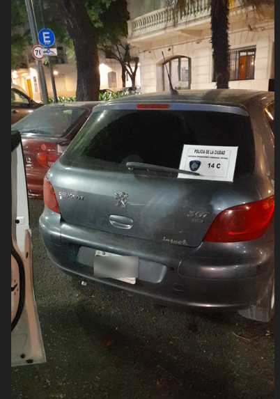 También los oficiales hallaron una copia de una llave del departamento, y una llave de un vehículo con la patente, por lo cual los efectivos buscaron por las inmediaciones, dando con un Peugeot 307, que estaba estacionado a la vuelta, sobre la avenida del Libertador al 2500, presto para la fuga.