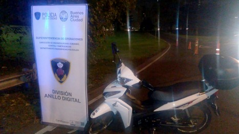 Personal de la División Anillo Digital de la Policía de la Ciudad tomó intervención del hecho, luego de la señal de alerta irradiada por los operadores tras impactar la patente de la Honda Wave sustraída en un de los pórticos de la avenida Del Libertadores, con dirección a la General Paz.